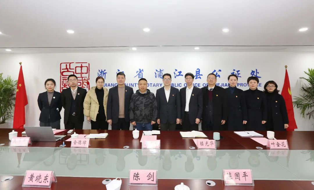 2023年1月19日,中共浦江县公证处支部与中共中国银行浦江县支行党总支委员会“党建结对共建签约仪式”在浦江县公证处会议室举行,浦江县司法局党组成员、政治处主任朱振华,浦江县公证处主任、支部书记楼光华,中国银行金华分行副行长陈剑,中国银行浦江县支行行长、支部书记陈国平,以及中国银行、公证处党员代表出席了本次签约仪式,开展了以“深入贯彻落实党的二十大精神,党建共建、砥砺前行!”为主题的结对共建活动。